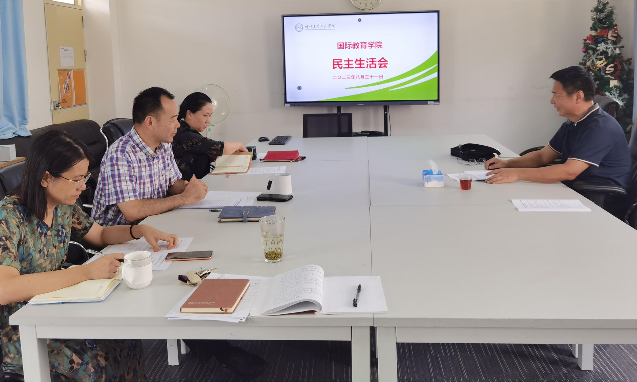 欧坚泉作了点评讲话。他表示,国际教育公司党总支此次专题民主生活会准备充分,能够始终紧扣主题,深化理论学习,查摆问题全面、准确,反面典型案例选取贴切实际工作,原因剖析深刻,批评公正、客观、坦诚,严肃认真,实事求是,具体措施明确,是一次高质量的民主生活会。