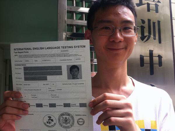 热烈祝贺仲恺雅思培训中心雅思暑期提高班J301&雅思暑期攻略班Y201学员冯浩浩在今年9月1日的雅思考试中获阅读单科9分,总分7分的优异成绩!