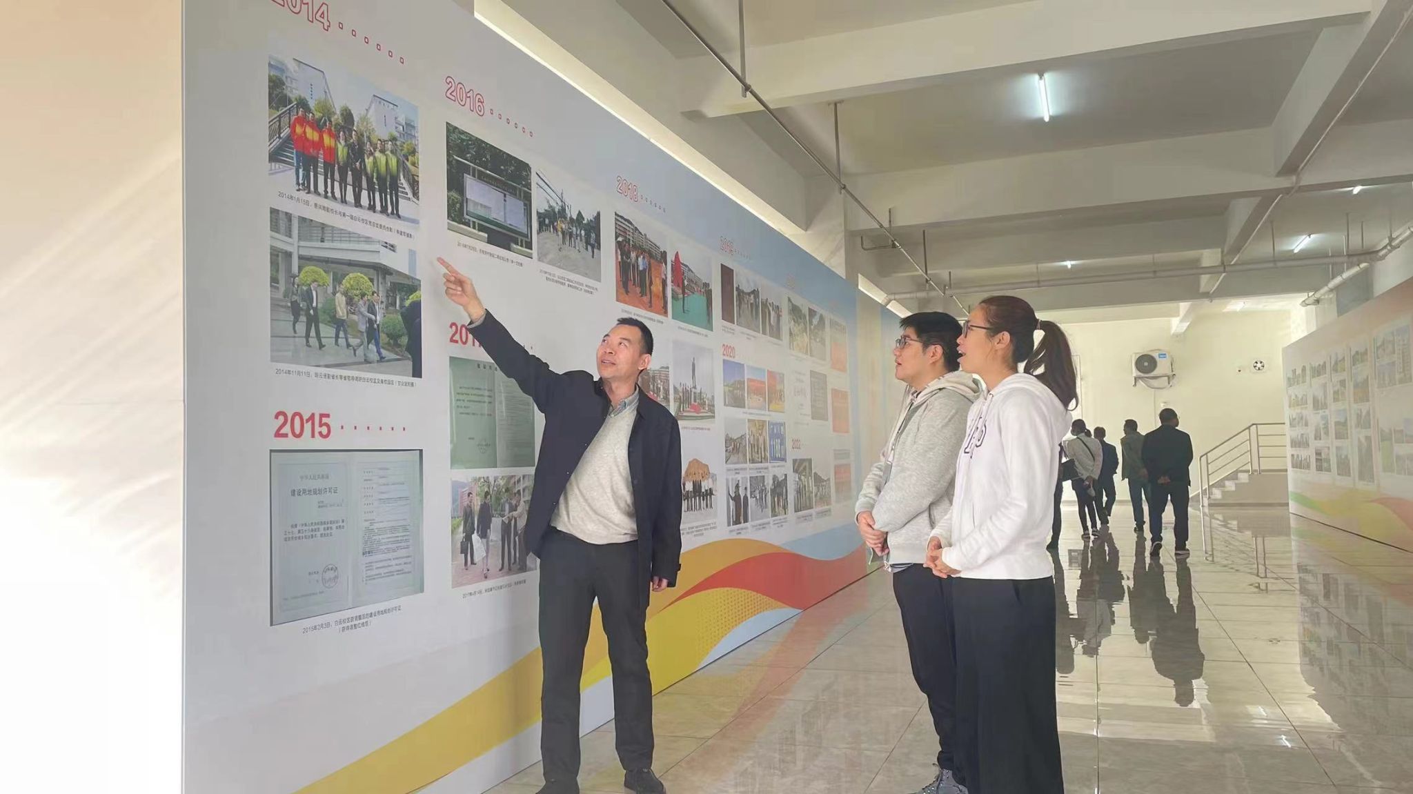 国际教育公司教工党支部于2024年1月18日开展主题党日活动,组织支部成员参观集团白云校区建设20年图片展。